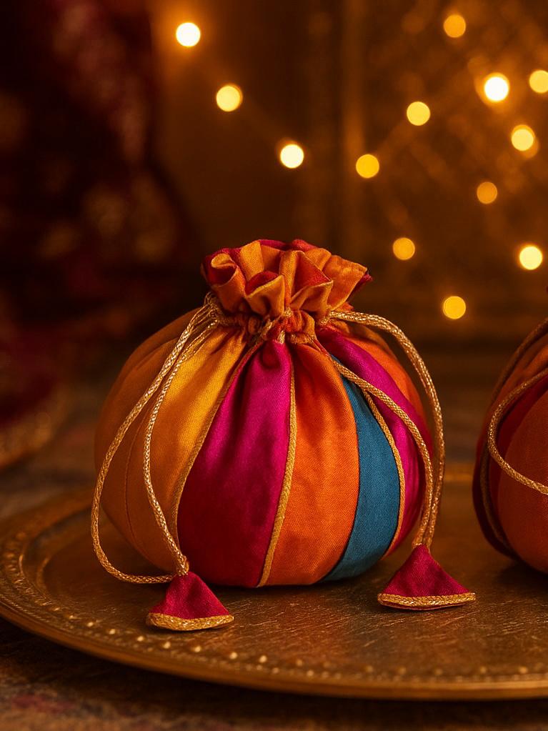 This handcrafted silk potli from TasselTales’ Wedding Collection is adorned with intricate tassels and delicate embroidery, making it the perfect companion for brides and wedding guests alike. A touch of luxury that completes every festive look.